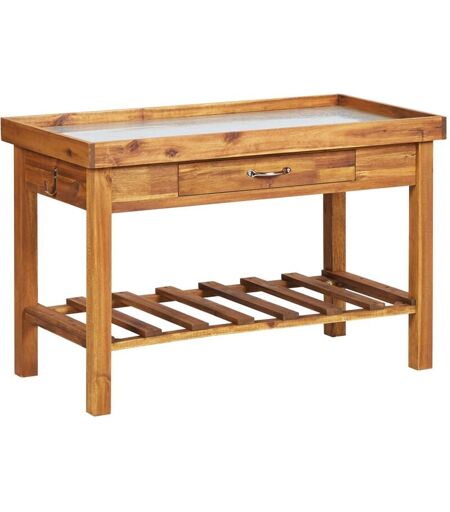 Description générale Gardez vos rempotages et fournitures de jardinage organisés avec notre magnifique banc de rempotage ! Cette table de plantation est en bois d'acacia massif avec un plan de travail en zinc, offrant à la fois durabilité et stabilité. Sa finition naturelle est prête à être peinte ou teinte selon vos préférences. De plus, elle est équipée d'une étagère de stockage, fournissant amplement d'espace pour ranger terreau, pots, outils à main, arrosoirs et bien plus encore. Convient pour jardiner debout ou assis, elle s'intègre parfaitement dans divers styles de décoration. Spécifications techniques Couleur : marron Matériau : bois d'acacia massif avec finition à l'huile + dessus en zinc Dimensions : 100 x 50 x 60 cm (l x P x H) Équipée d'un plan de travail en zinc et d'une étagère de rangement ...