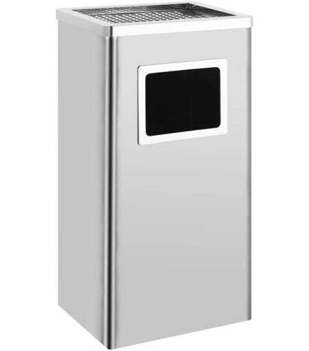 Caractérisé par l'élégance de l'acier inoxydable et par la conception de son cendrier, notre poubelle à cendrier de haute qualité présente non seulement un design sophistiqué, mais se distingue également par ses fonctionnalités. Notre bac a un récipient de récupération de grande capacité et comprend également un cendrier au sommet, qui peut être utilisé à l'intérieur et à l'extérieur, comme à l'hôtel, au restaurant, devant la maison, dans des bureaux ou dans d'autres lieux publics. Fabriqué en acier inoxydable, il est robuste et difficile à déformer et à la rouille, ce qui peut assurer une longue durée de vie. Vous pouvez facilement vider le cendrier avec les inserts amovibles. Le corps intérieur peut être retiré avec une grande facilité pour que vous puissiez le nettoyer et le laver. Couleur : argenté Matériau : Acier inoxydable Doublure intérieure : tôle galvanisée Dimensions totales : 30 x 24 x 61 cm (L x l x H) Capacité : 45 L Cendrier avec poubelle intégrée Récipient intérieur et ...