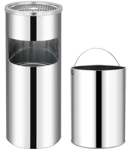 Caractérisé par l'élégance de l'acier inoxydable et par la conception de son cendrier, notre poubelle à cendrier de haute qualité présente non seulement un design sophistiqué, mais se distingue également par ses fonctionnalités. Notre bac a un récipient de récupération de grande capacité et comprend également un cendrier au sommet, qui peut être utilisé à l'intérieur et à l'extérieur, comme à l'hôtel, au restaurant, devant la maison, dans des bureaux ou dans d'autres lieux publics. Fabriqué en acier inoxydable, il est robuste et difficile à déformer et à la rouille, ce qui peut assurer une longue durée de vie. Vous pouvez facilement vider le cendrier avec les inserts amovibles. Le corps intérieur peut être retiré avec une grande facilité pour que vous puissiez le nettoyer et le laver. Couleur : argenté Matériau : Acier inoxydable Doublure intérieure : tôle galvanisée Dimensions totales : 25 x 61 cm (Diamètre x H) Capacité : 30 L Récipient intérieur (capacité) : 12 L Cendrier avec ...
