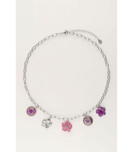 Island collier avec 5 charms fleurs My Jewellery Argenté/Violet/Rose One size femme