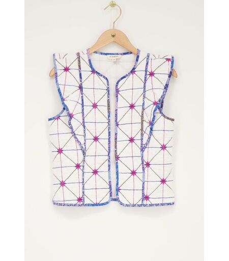 Veste sans manches blanche avec broderies bleues et roses My Jewellery Blanc M femme