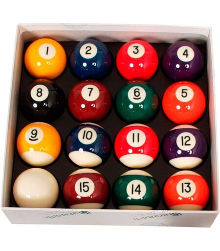 Les boules de billard Aramith sont largement reconnues comme les meilleures boules du monde. Cet ensemble est en qualité Aramith Standard, et de taille 54.0 mm, donc destiné aux petites tables. Les boules Aramith Standard ont un pourcentage plus faible de résine phénolique, ce qui se traduit par un prix plus bas. Les balles offrent la qualité à laquelle vous êtes habitué chez Aramith. Aramith Standard est le compromis ultime entre la qualité et le prix. ...