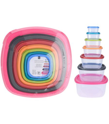 Set 7 Boîtes À Lunch En Plastique, Couvercle De Couleur, Capacité : 225ml, 375ml, 650ml, 1125ml, 1900ml, 3200ml, 5500ml, Convient Pour Max Micro-Ondes. 5 Min. 850w/120ºc, Lave-Vaisselle Et Congélateur, Ne Convient Pas Au Four, 911000160. Excellent Houseware ...
