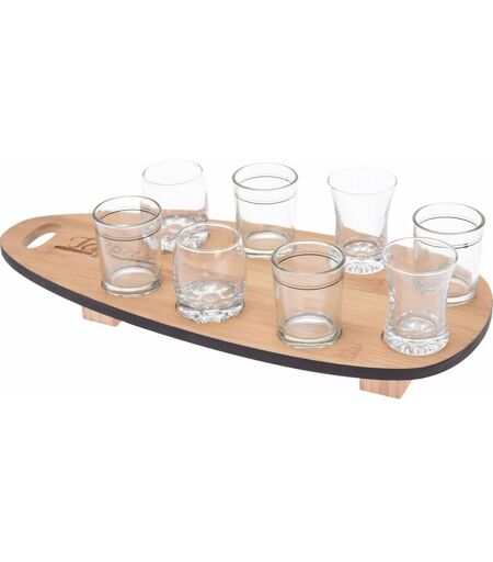 EXCELLENT HOUSEWARE Set de collation, 8 verres sur un plateau en bambou