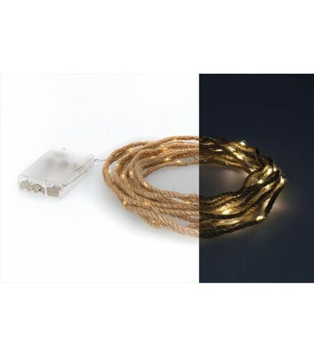 EDM Guirlande Fixe à Piles 30 Micro LEDs Corde De Jute Lumineuse Blanc Chaud 5,03m