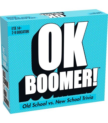 """Abbatti lo stereotipo e diventa la squadra (o il giocatore) che sa di più sulla generazione rivale!"" SEI AL PASSO COI TEMPI O TOTALMENTE FUORI DAL MONDO? Generazioni a confronto! Old School e New School si sfidano per capire quanto è grande il GAP generazionale. Dalle parole gergali ai personaggi dei cartoni animati, la New School è interrogata su questioni da ""Old School"" e viceversa! La squadra che sa di più dell'altra School è davvero COOL!" Goliath Toys Ok Boomer!. Tipo di prodotto: Carta da gioco, Genere: Comparazione, Età consigliata (min): 14 anno/i, Gioco di famigliaCaratteristicheNome del giocoOk Boomer!Modalità di giocoMultiplayerGioco di famigliaSìNumero minimo di giocatori2Numero massimo di giocatori8Età suggeritaAdulti e bambiniGenere consigliatoQualsiasi tipoTipo di prodottoCarta da giocoEtà consigliata (min)14 anno/iGenereComparazioneEffetti audio supportatiNoMagneticoNoTimerNoDati su imballaggioLarghezza imballo115 mmProfondità imballo50 mmAltezza imballo178 mmPeso dell'imballo590 gQuantità per pacco1 pzTipo di imballoScatola ...