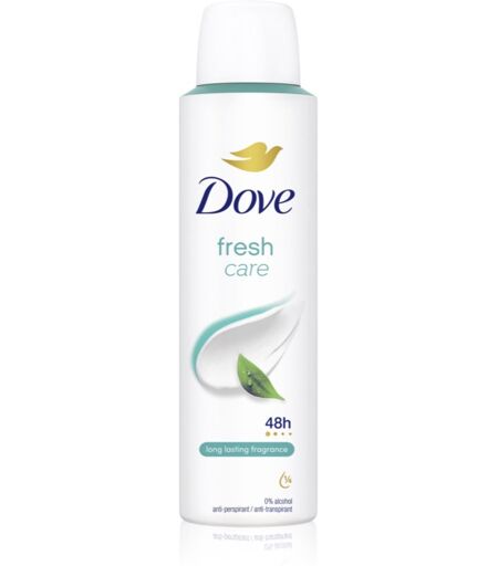 Dove Fresh Care, 150 ml, Antitranspirants pour femme, L’anti-transpirant Dove Fresh Care absorbe parfaitement la transpiration et neutralise les odeurs. Il vous donne chaque jour une agréable sensation de fraîcheur et de propreté. Le produit : protège efficacement contre la transpiration protège contre les mauvaises odeurs laisse une sensation de fraîcheur qui dure apporte de la fraîcheur sent bon rafraîchit agréablement Mode d’emploi : Appliquez sur la peau propre et sèche des aisselles. ...