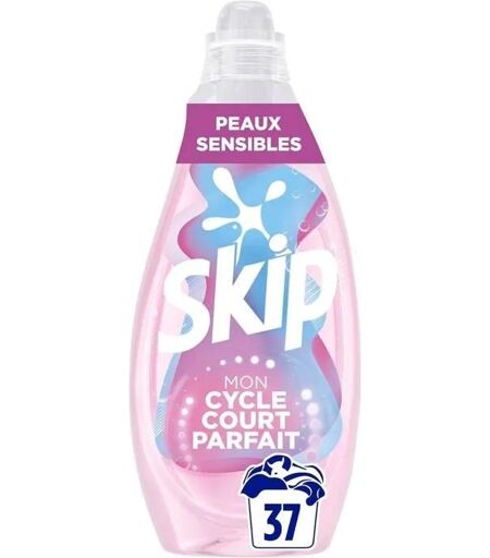 Skip - Lessive Liquide - Cycle Court Peaux Sensibles - Développée avec des dermatologues - Douce et Respectueuse - Résultat optimal en cycle court - 37 Lavages ...
