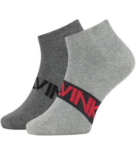 Lot de 2 paires de chaussettes Calvin Klein - Coton (72%), polyamide (26%), élasthanne (2%) - 1 modèle gris chiné - Bande noire imprimée du logo en rouge - 1 modèle gris anthracite - Logo imprimé en noir Conseils d'entretien : - Lavage à 40°C maximum - Repassage et nettoyage à sec déconseillés - Séchage en machine possible - Blanchiment possible ...