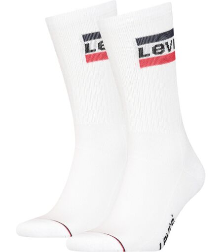 Lot de 2 paires de chaussettes Levi's - 75% Coton, 22% Polyamide, 3% Élasthanne - Blanc - Coupe hautes - Chaussette unie blanche ...
