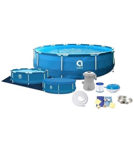 Description générale Avec une piscine hors sol Avenli 366 avec pompe, vous serez merveilleusement au frais l'été prochain. La piscine est livrée en kit super complet, au meilleur prix disponible. Avenli est l'un des plus grands producteurs de piscines gonflables et hors sol, équipées de leur propre système de pompe et de filtration. Spécifications techniques Type : Piscine hors sol Diamètre : 366 cm Hauteur : 76 cm Hauteur de remplissage maximale : 66 cm Contenu à 90 % : 6125 litres Capacité de la pompe : 1136 l/h Filtre : Type 1 Toile : PVC 3 couches Couleur : Bleu Poids du produit : 24,5 kg Compatibilité et accessoires Piscine Avenli 366 Toile (PVC 3 plis) Cadre + connecteurs Pompe, tuyaux, filtre Feuille de fond Couvercle de protection Kit de réparation Distributeur de chlore (chlore non inclus) Écran de filtre, colliers de serrage Vanne de vidange (compatible avec tuyau d'arrosage) Installation Les cadres d'Avenli sont constitués de tubes métalliques enduits de poudre avec des ...