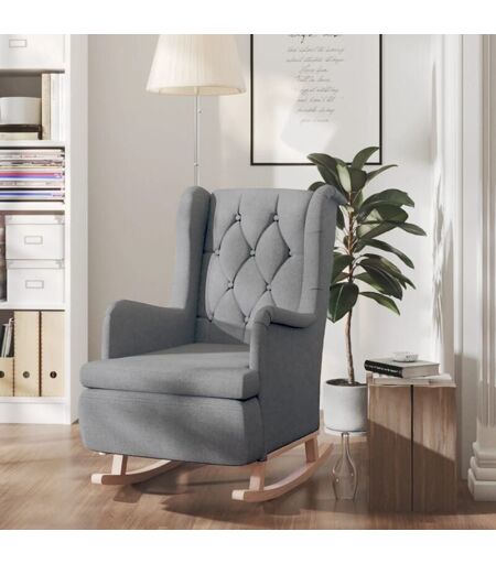 Vidaxl - Fauteuil avec pieds à bascule en bois d'hévéa Gris clair Tissu