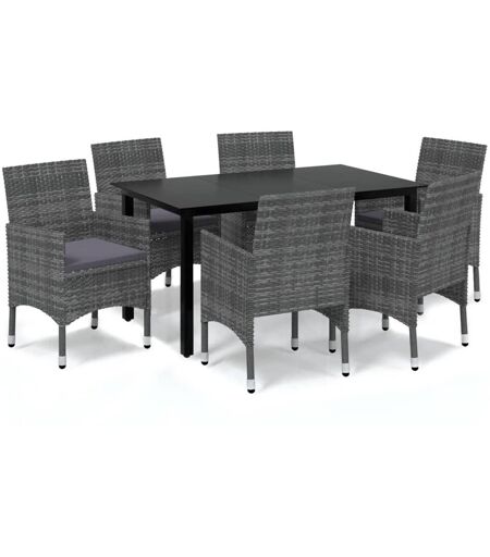 Vidaxl Mobilier À Dîner De Jardin Et Coussins 7pcs Résine Tressée Gris
