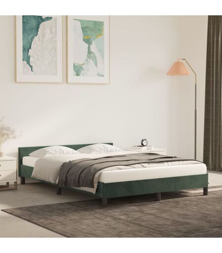Vidaxl Cadre De Lit Sans Matelas Vert Foncé 140x190 Cm Velours