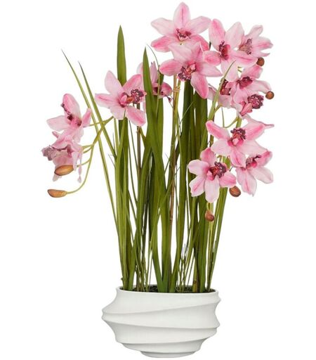 Mica Decorations - Cymbidium 'Boat Orchid' Plante artificielle rose avec pot