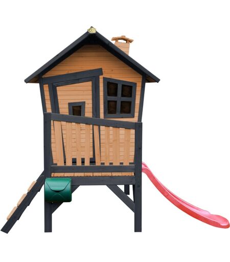 Robin Maison Enfant avec Toboggan Rouge Aire de Jeux pour l'extérieur en anthracite & marron Maisonnette / Cabane de Jeu en Bois fsc - AXI
