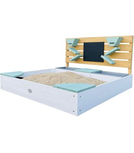 AXI Cato bac à sable en bois, bac à sable avec bassin d'eau et mur de jeu Bac à sable équipé de jouets de sable, tableau à craie, entonnoirs et