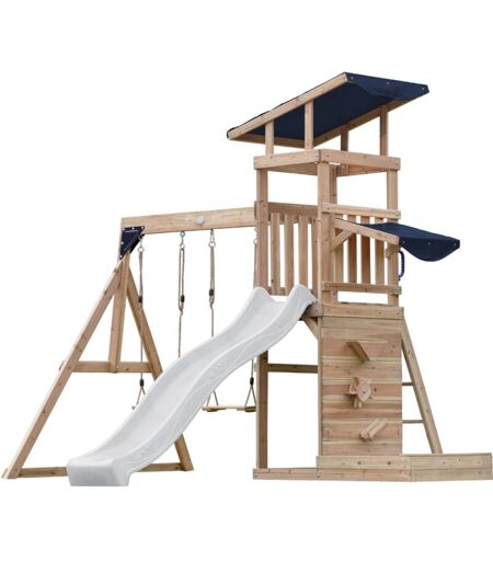 AXI Malik Aire de Jeux en Bois avec 2 Balançoires, Toboggan Blanc/ Aire de Jeux Extérieur, Bac à Sable, Mûr de Jeux/Toboggan avec raccordement à eau