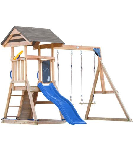 AXI Mia Aire de Jeux en Bois avec 2 Balançoires, Toboggan Bleu/ Aire de Jeux Extérieur, Bac à Sable, Mur d'escalade Portique Balançoire/Jeux en Bois