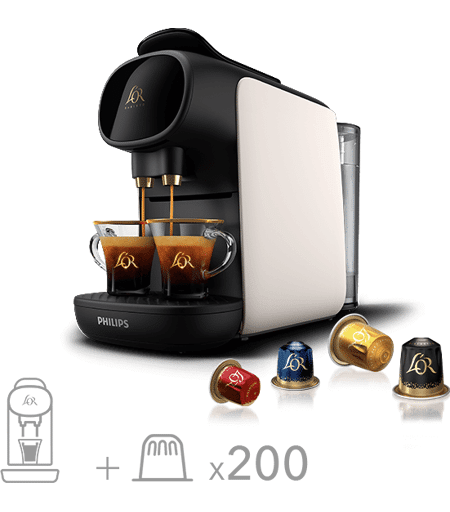 Design compact Préparez un double espresso ou deux espressos simultanément Jusqu'à 19 bars de pression pour un espresso parfait Fonctionne avec toutes les capsules L'OR les capsules Nespresso®* et la plupart des autres capsules compatibles. Ce lot contient une machine à café L'OR BARISTA et un assortiment prédéfini de 200 capsules classiques et XXL. Après votre achat enregistrez votre machine (https://prf.hn/click/camref:1011l3SFqG/creativeref:1100l98999/destination:https%3A%2F%2Fwww.lorespresso.com%2Ffr_fr%2Fmachine-registration%29 en ligne et recevez un bon d'achat de la valeur de 20€ à partir de 60€ de commande sur le site. *Marque appartenant à un tiers n’ayant aucun lien avec JACOBS DOUWE EGBERTS. ...