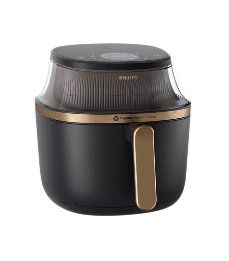Assistez au grésillement, goûtez à la variété.Allez au-delà de la cuisson électrique avec 16 fonctions différentes : de la cuisson rapide à de longues heures de cuisson en une seule fois. De délicieux repas faits maison sont désormais à portée de main !ALLEZ AU-DELÀ DE LA CUISSON ÉLECTRIQUEChoisissez parmi 16 fonctions de cuisson différentes : de la cuisson au four ou au gril à la décongélation et au réchauffage. Les réglages peuvent descendre jusqu'à 40 °C et durer jusqu'à 24 heures.CAPACITÉ DE 6,2 LITRESProfitez d'une capacité suffisante pour tous vos repas en famille, qu'il s'agisse de 1 kg de légumes, de 8 pilons de poulet ou de 5 morceaux de saumon.CUISSON RAPIDE ET HOMOGÈNE AVEC « RAPIDAIR PLUS »Savourez de délicieux aliments cuits en utilisant jusqu'à 90 % de matières grasses en moins ! La technologie brevetée « RapidAir Plus » fait circuler l'air chaud autour et à travers les ingrédients, garantissant ainsi une cuisson uniforme de vos plats maison, à l'intérieur comme à l'extérieur.SURVEILLEZ VOS ALIMENTS AVEC STYLEFini les devinettes ! Utilisez l'élégante fenêtre de cuisson pour surveiller la progression de la cuisson de votre repas et savoir quand il est cuit à point.LE GRAS C'EST DU PASSÉLaissez jusqu'à 40 % de l'excès de gras en moins grâce à un panier pratique ! Le panier sépare vos aliments de la graisse qu'ils contiennent.L'INSPIRATION ILLIMITÉE AVEC L'APPLICATION « HOMEID »Découvrez plus de 10 000 recettes délicieuses adaptées à votre friteuse, avec des instructions faciles étape par étape.ÉCRAN TACTILE POUR UN CONTRÔLE AISÉL'écran tactile facile à utiliser vous permet de choisir parmi 12 modes différents : frites surgelées, frites fraîches, pilons de poulet, viande, poisson, petit-déjeuner, légumes, muffins, aliments végétaliens, fruits déshydratés, mode maintien au chaud, et un bouton favori que vous pouvez utiliser pour enregistrer votre propre mode préféré.GAGNEZ DU TEMPS ET DE L'ÉNERGIECuisinez jusqu'à 50 % plus vite et économisez jusqu'à 70 % d'énergie par rapport à un four ordinaire.NETTOYAGE FACILEGrâce au revêtement antiadhésif et aux éléments amovibles pouvant être passés au lave-vaisselle, vous passerez moins de temps à nettoyer et plus de temps à savourer vos plats préférés. ...