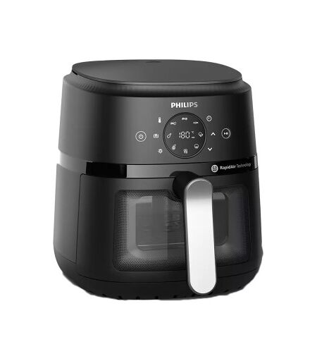 Regardez vos plats savoureux cuire en toute simplicité.Un extérieur croustillant, un cœur tendre. La technologie unique RapidAir vous fait économiser du temps et de l'électricité, sans impact sur le goût. Regardez par la fenêtre de cuisson vos ingrédients préférés se transformer en de délicieux plats en moins de 20 minutes.DÉLICIEUSEMENT CROUSTILLANT GRÂCE À LA TECHNOLOGIE RAPIDAIRCroustillant à l'extérieur et tendre à l'intérieur, avec peu d'huile ajoutée. La technologie RapidAir avec StarPlate unique crée une circulation d'air parfaite pour une cuisine rapide et savoureuse à chaque fois.DES PLATS SAINS AVEC JUSQU'À 90 % DE MATIÈRE GRASSE EN MOINS*La cuisson à l'air chaud vous permet de préparer vos plats préférés avec jusqu'à 90 % de matières grasses en moins, sans impact sur le goût.13 MODES DE CUISSON D'UNE SIMPLE PRESSION SUR UN BOUTONFaites frire à l'air, cuire, griller, rôtir et plus encore. Réglez la durée et la température manuellement ou utilisez les présélections pour bénéficier de 13 modes de cuisson différents, dont le réchauffage, la décongélation et le maintien au chaud.UN NETTOYAGE SIMPLE ET RAPIDEInutile de frotter ou de laisser tremper. Gagnez du temps sur le nettoyage avec StarPlate antiadhésive sans PFOA compatible lave-vaisselle.FENÊTRE DE CUISSON POUR SURVEILLER LES PLATSPlus besoin de deviner. Gardez un œil sur vos plats pendant qu'ils cuisent pour savoir quand ils ont atteint la perfection !DE DÉLICIEUSES RECETTES ADAPTÉES À VOTRE AIRFRYER DANS L'APPLICATION NUTRIUDécouvrez des milliers de recettes gratuites avec des réglages spécifiques à votre Airfryer. 93 % des utilisateurs et utilisatrices déclarent que l'application NutriU leur permet de cuisiner plus facilement.**GAGNEZ DU TEMPS ET RÉDUISEZ VOS FACTURES D'ÉLECTRICITÉCuisinez jusqu'à 50 % plus vite et économisez jusqu'à 70 % d'électricité en utilisant l'Airfryer Philips au lieu de votre four.ÉCRAN TACTILE POUR DES COMMANDES PRATIQUESL'écran tactile facile à utiliser vous donne le choix entre 9 présélections : frites surgelées, frites fraîches, pilons de poulet, viande, poisson, petit déjeuner, légumes, gâteau et maintien au chaud.CUVE DE 4,2 L : UN FORMAT PARFAIT POUR N'IMPORTE QUELLE CUISINESon format compact est idéal pour toutes les cuisines, grandes ou petites. Peut accueillir jusqu'à 500 g de frites, 6 pilons de poulet ou 500 g de légumes dans une cuve de 4,2 litres.******Par rapport à des frites maison cuites dans une friteuse classique.**Enquête auprès des utilisateurs et utilisatrices de NutriU, 6 000 personnes interrogées, 2021. ...