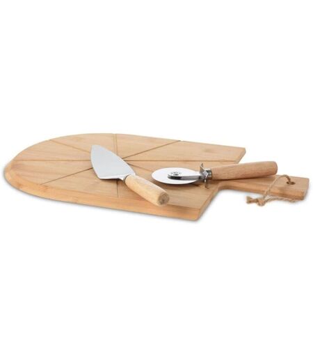 Excellent Houseware Ensemble De Coupe À Pizza 3 Pcs 43x30 Cm Bambou