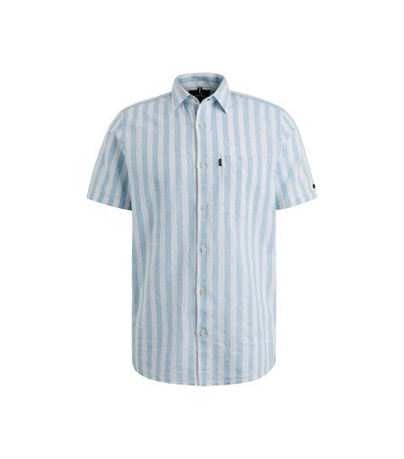 Chemise Vanguard Chemise Short Sleeve De Lin Rayures Bleu Clair Bleu