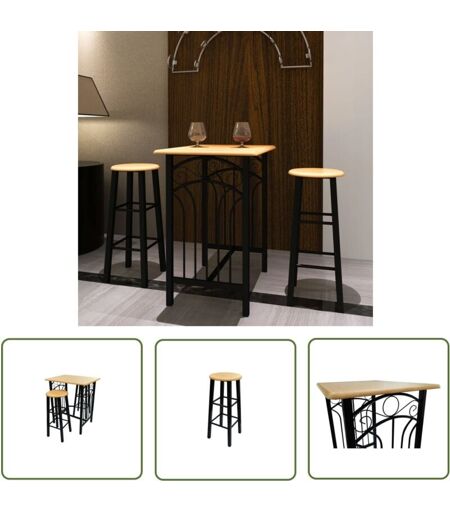 The Living Store Ensemble de table à dîner Bois brun roux avec noir Acier Cet ensemble de petit-déjeuner élégant et contemporain comprend une table de petit-déjeuner rectangulaire et 2 chaises hautes avec une finition de bois brun roux. Il est idéal pour les petites maisons ou lorsque vous cherchez à économiser de l'espace et à ajouter une touche géniale à votre maison. Il s'intégrera parfaitement dans n'importe quel environnement de cuisine ou de maison. Les surfaces sont en bois durable, facile à nettoyer. Les cadres en acier offrent une excellente stabilité. De plus, les chaises peuvent être cachées sous la table lorsqu'elles ne sont pas utilisées, économisant ainsi beaucoup d'espace. La livraison comprend 1 table et 2 tabourets. Vos avantages Cet ensemble de table et de tabourets a un bel effet de hêtre et une hauteur confortable, parfaitement adapté à l'environnement de la maison / cuisine. Autres spécifications Matériau : MDF, acier Couleur : noir / brun roux Dimensions de la ...