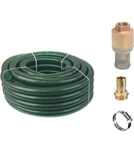 Ce tuyau spiralé peut être utilisé pour plusieurs situations Vous pouvez raccorder ce tuyau spiralé à votre pompe aussi bien pour l’aspiration que pour l’évacuation Le tuyau peut être aisément monté à une pompe de surface ou à un surpresseur grâce à un raccord cannelé ou à un collier de serrage. Vous pouvez aussi utiliser le tuyau avec une pompe immergée pour évacuer l’eau. La plupart des pompes immergées sont fournies avec un raccord cannelé ou avec un raccord pour tuyau. Vous pouvez les fixer au tuyau avec un collier de serrage. Le tuyau spiralé est fourni avec un Crépine avec clapet anti-retour, Raccord cannelé laiton 25 mm (1" mâle) et un collier de serrage. Pour un raccord direct du tuyau à votre pompe, vous avez besoin de quelques accessoires, comme un raccord cannelé et un collier de serrage. En fonction du filet de votre pompe, sélectionnez le manchon cannelé correspondant. Si votre pompe est équipée d'un raccord fileté femelle, choisissez un raccord cannelé avec un raccord ...