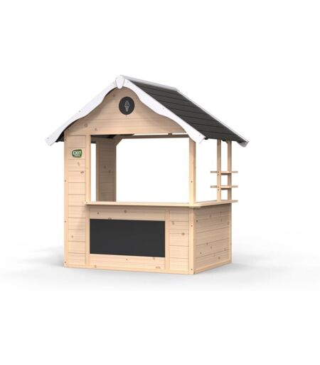 Avec une maisonnette en bois EXIT Hika pour l'extérieur, ton enfant peut vivre, jour après jour, les aventures les plus créatives et imaginaires dans ton propre jardin. Sur le devant de la structure de jeu pour le jardin, il y a une roue pour jeux de rôle unique. Lorsque tu tournes cette roue, elle s'arrête sur un des huit thèmes proposés. Ainsi, tu transformeras ta maisonnette en bois en glacier, en château, en cabinet de vétérinaire ou en bureau de police. Les possibilités sont infinies !La maisonnette pour l'extérieur est compacte et ouverte, et convient aux enfants dès 2 ans. Ils peuvent facilement entrer et sortir de cette maisonnette ouverte. Il y a suffisamment d'espace pour bouger, jouer, partager et vivre des aventures à plusieurs enfants. La maisonnette de jeu compacte pour l'extérieur a une jolie conception intemporelle et s'intègre, par conséquent, à n'importe quel jardin. Des détails, tels que le comptoir, la barrière, les planches avec la peinture pour tableau noir et le ...
