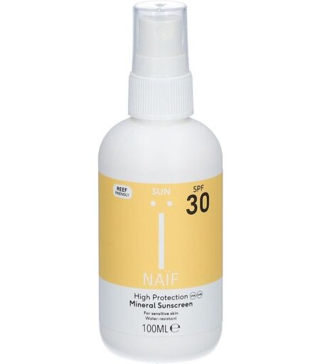 Dès que le soleil pointe le bout de son nez, il est temps d'appliquer une crème solaire. Mais ralentissez, car avec le spray solaire Naïf, vous serez prête à affronter le soleil en un rien de temps. Et... Les produits contiennent des filtres et des huiles naturels. Vous pouvez donc prendre des bains de soleil et nager en toute tranquillité.Bien entendu, il protège la peau de manière optimale contre les rayons UVA et UVB tout en la nourrissant. La formule à base d'oxyde de zinc, respectueuse de la peau, enrobe la peau et réfléchit le soleil. La peau est ainsi protégée instantanément, sans temps d'application, et le risque d'irritation cutanée est minimisé. Grâce à l'utilisation d'huiles naturelles, elle s'étale facilement.Saviez-vous que les crèmes solaires peuvent polluer considérablement l'environnement ? Grâce au filtre minéral qu'elle contient, cette crème a moins d'impact sur l'océan, ce qui la rend respectueuse des coraux. De plus, l'emballage est en plastique recyclé. Alors, profitez du soleil en toute sérénité !BénéficesHaute protection des peaux sensibles grâce à un filtre UV minéralProtection immédiate contre les rayons UVA et UVBRésistant à l'eau : profitez de l'eau en toute sécuritéRespectueux des récifs : sans oxybenzone, octinoxate ni octocrylèneEn spray pratique, facile et rapide à appliquer sur la peauIndicationPour peaux sensiblesApplicationAppliquer uniformément sur la peau. Renouveler l'application toutes les deux heures et après la baignade pour une protection optimale. S'étale facilement !IngrédientsDecyl Oleate, Zinc Oxide, Coco-Caprylate/Caprate, Alcohol, Triheptanoin, Parfum/Fragrance, Polyhydroxystearic Acid, Allantoin, Tocopherol, Aqua/Water, Silica Dimethyl Silylate, Pongamol, Helianthus Annuus Seed Oil, Bisabolol, Denatonium Benzoate. ...