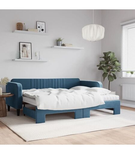 Vidaxl Lit De Jour Avec Lit Gigogne Et Matelas Bleu 90x200 Cm Velours