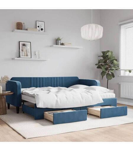 Vidaxl Lit De Jour Avec Gigogne Et Tiroirs Bleu 80x200 Cm Velours