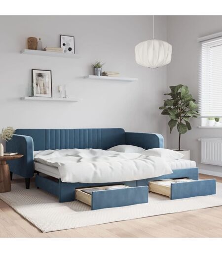 Vidaxl Lit De Jour Avec Gigogne Et Tiroirs Bleu 100x200 Cm Velours