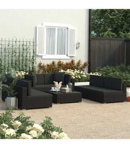 Cet ensemble de canapés en rotin élégant mais très confortable attirera tous les regards dans votre jardin ou sur votre terrasse. Bois d'acacia massif : le bois d'acacia massif est un matériau naturel magnifique. Le bois d'acacia est un bois dur tropical, dense, robuste et durable. Par conséquent, le cadre de la chaise longue en bois d'acacia à finition à l'huile est stable et facile à entretenir.Matériau durable : la résine tressée, également connue sous le nom de rotin poly, résiste aux intempéries et est facile à nettoyer. Elle reste belle à l'extérieur pendant une longue période. Elle offre une excellente qualité, commodité et un aspect esthétique.Confort supplémentaire : le coussin bien rembourré de l'ensemble de salon extérieur offre un confort ultime pendant votre temps de détente.Table pratique : le dessus robuste en bois d'acacia est parfait pour garder à portée de main votre téléphone, livre, collation ou boisson. Attention :Pour que vos meubles d'extérieur restent beaux, nous vous recommandons de les protéger avec une housse imperméable. Bon à savoir :Pour faciliter au maximum le montage, chaque produit est livré avec des instructions. Couleur : rotin noir, coussin noir Matériau : résine tressée, dessus de table en verre, cadre en acier enduit de poudre Matériau de la housse du coussin : 100 % polyester Épaisseur du coussin : 6 cm Dimensions de la table basse : 74 x 74 x 26 cm (L x l x H) Canapé d'angle : Dimensions : 70 x 70 x 54 cm (l x P x H) Largeur du siège : 59 cm Profondeur du siège : 59 cm Hauteur d'assise depuis le sol sans coussin : 26 cm Canapé central : Dimensions : 70 x 70 x 54 cm (l x P x H) Largeur du siège : 70 cm Profondeur du siège : 59 cm Hauteur d'assise depuis le sol sans coussin : 26 cm La livraison comprend : 2 x canapé d'angle 4 x canapé de centre 1 x table basse 8 x coussin de dossier 6 x coussin de siège 2 x oreiller rouge ...