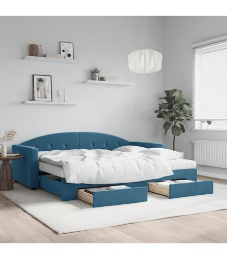Vidaxl Lit De Jour Avec Gigogne Et Tiroirs Bleu 90x200 Cm Velours