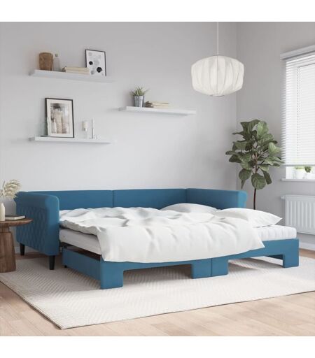 Vidaxl Lit De Jour Avec Lit Gigogne Et Matelas Bleu 100x200 Cm Velours