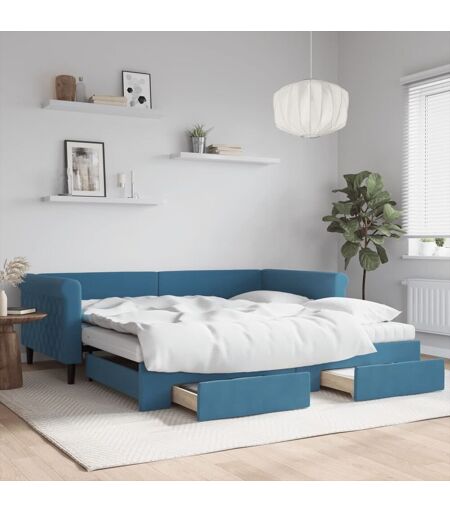 Vidaxl Lit De Jour Avec Gigogne Et Tiroirs Bleu 100x200 Cm Velours