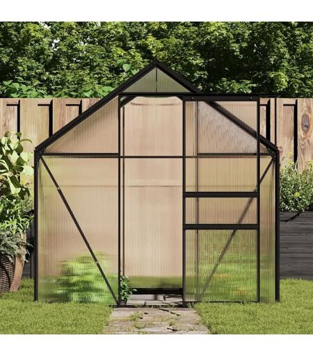 Couleur : anthracite et transparent Matériau : aluminium, polycarbonate Dimensions : 190 x 190 x 132/202 cm (l x P x H) Surface du terrain : 3,61 m² Capacité : 6,029 m³ Épaisseur du panneau : 4 mm Résistance aux UV Comprend un cadre de base (composé de 4 profils forts) L'assemblage est requis ...