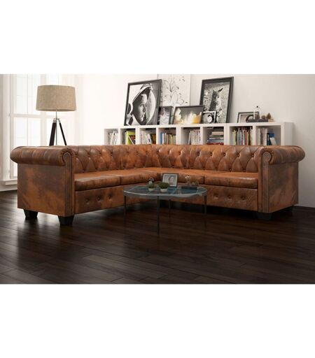 vidaXL Canapé D'angle Chesterfield 5 Plcs Cuir Artificiel Marron