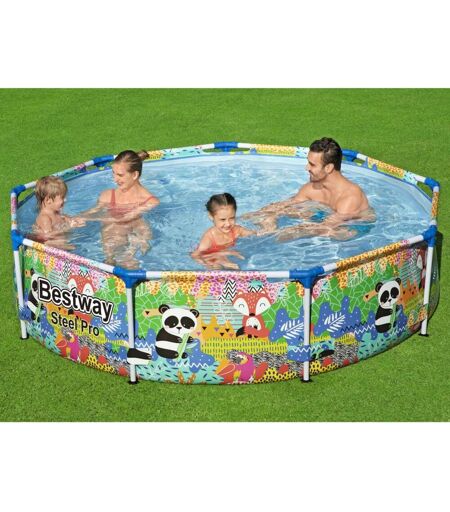 Vous aurez beaucoup de plaisir avec votre famille et vos amis dans cette piscine Steel Pro MAX de la marque Bestway. La forme ronde offre plus d'espace pour nager et jouer. Les parois de la piscine sont construites avec DuraPlus, un matériau renforcé avec un noyau en maille de polyester et deux couches de PVC de haut calibre pour une résistance et une durabilité supérieures. Le mur extérieur est conçu avec des graphiques d'animaux colorés. La piscine hors sol a un cadre en acier résistant à la corrosion. Grâce à la vanne de vidange de contrôle de débit intégrée, il est facile de vider l'eau. La piscine hors sol peut être installée rapidement et facilement. Posez simplement la piscine sur une surface plane, installez tout le cadre, puis remplissez la piscine d'eau. Il est également facile de replier la piscine pour le stockage et le transport. Couleur : multicolore Dimensions : 274 x 66 cm (Diamètre x H) Capacité (90 %) : 3 221 L (851 gal) Parois latérales robustes à 3 couches en PVC et polyester La bande à 3 couches offre un support mural supplémentaire Système de brevet FrameLink Graphiques d'animaux colorés sur le mur extérieur Rustine de réparation adhésive résistante à l'eau Mise en place facile en 20 minutes Facile à démonter lors de la préparation du stockage hors saison Vanne de drainage à contrôle de débit intégrée L'assemblage est requis Numéro d'article Bestway : 5612F ...