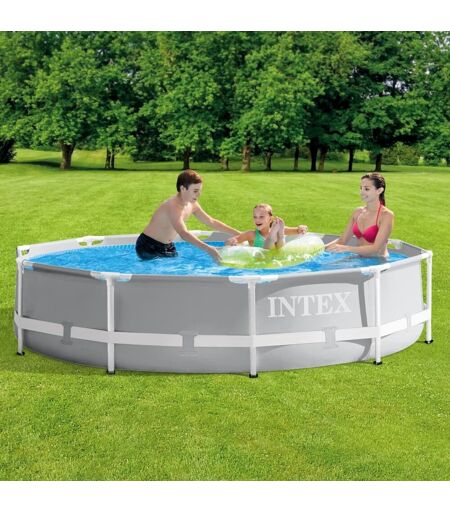 Amusez-vous dans votre cour dans cet ensemble de piscine Prism Frame Premium de la marque Intex ! Le revêtement de chaque piscine Frame de la marque Intex se compose de 3 couches : une couche intérieure en polyester quadrillé avec une couche extérieure en PVC épaisse et durable des deux côtés. La piscine, rehaussée d?un solide tube en acier enduit de poudre et d?un revêtement élégant et haut de gamme, a une construction stable. Elle est également facile à entretenir et à stocker lorsqu'elle n?est pas utilisée. Avec ses dimensions généreuses, cette piscine permet de nager avec toute la famille en même temps. Achetez la piscine et profitez d?un bel après-midi d?été avec votre famille et vos amis. Couleur : gris Dimensions : 305 x 76 cm (Diam. x H) Cadre en acier enduit de poudre durable Forme : ronde Capacité d'eau (90 %) : 4 485 L (1 185 gal) Installation en 30 minutes Tension de la pompe de filtration : 12 V Capacité de la pompe de filtration : 1 250 L (330 gal) Matériau à 3 couches résistantes à la perforation Pour enfants de plus de 6 ans Numéro d'article Intex : 26702GN La livraison contient : 1 x piscine 1 x pompe de filtration ...