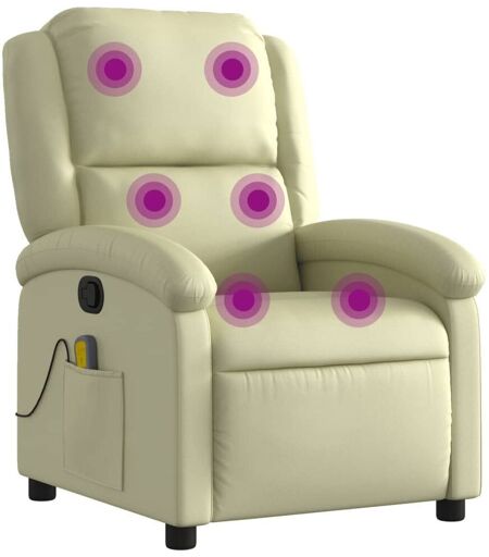 Vidaxl Fauteuil De Massage Inclinable Crème Cuir Véritable