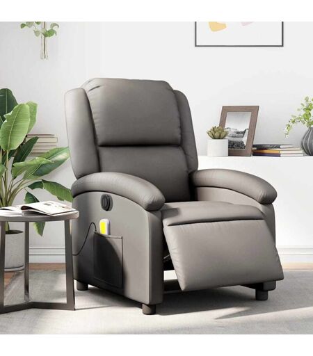 Vidaxl - Fauteuil de massage inclinable électrique gris cuir véritable