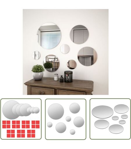 The Living Store - Ensemble de miroir mural 7 pcs Verre Rond - Miroirs Muraux - Décoration Murale - Ensemble De Miroirs - Miroir Rond - Déco