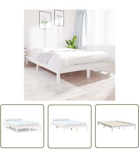 The Living Store - Cadre de lit sans matelas blanc bois massif - Cadre De Lit - Lit Double - Lit Super King - Bois Massif - Bois De Pin