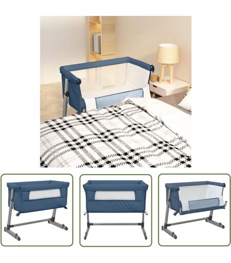 The Living Store Lit pour bébé avec matelas Bleu marine Tissu de lin Ce lit pour bébé avec matelas peut être utilisé à côté du lit pour donner à votre bébé un sentiment de sécurité à la proximité des parents. Large application : ce lit bébé peut être utilisé comme lit autoportant où votre enfant peut dormir en toute sécurité, ou vous pouvez également l'attacher au lit des parents pour un meilleur soin du bébé. Matériau pratique : le cadre en fer assure la stabilité. Le lin présente un aspect simple et épuré et est respirant et durable. Le tissu en maille respirante vous permet de mieux surveiller votre bébé. Hauteurs réglables : le lit bébé, doté de 5 hauteurs réglables, est idéal pour une utilisation polyvalente. Vous pouvez l'utiliser au côté du lit, près des canapés et à d'autres endroits. Vous pouvez choisir la bonne hauteur en fonction de vos besoins. Matelas amovible : le matelas du lit pour bébé est souple et confortable. Il est également doté d'une fermeture éclair qui le rend ...