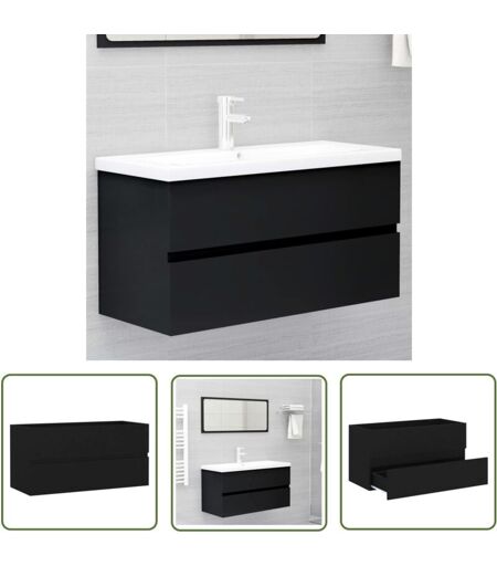 Abcrital - The Living Store Armoire d'évier Noir 90x38,5x45 cm Bois d'ingénierie - Armoire De Salle De Bain - Meuble Salle De Bain - Rangement Salle
