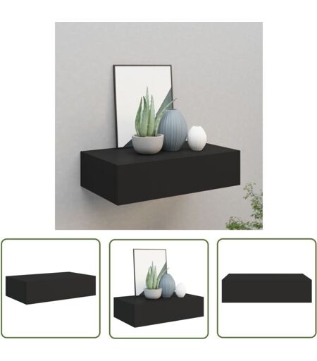 The Living Store - tagère à tiroir murale noir 40x23,5x10 cm mdf - Étagère Murale - Étagère à Tiroir - Rangement Mural - Meuble Déco - Décoration